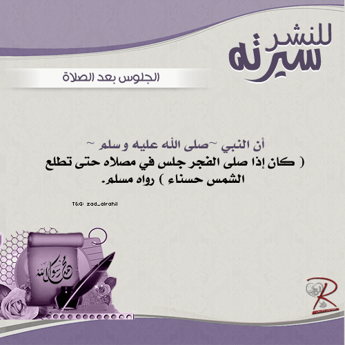 من صلى الفجر في جماعة ثم قعد يذكر الله بتلاوة القرآن أو مدارسة العلم الشرعي أو الذكر إلى وقت الشروق ثم بعد ذلك صلى ركعتي الضحى بعد الشروق باثنتي عشر دقيقة وله أن يصليها خارج المسجد إلى ما قبل الظهر بسبع دقائق كان له هذا الأجر. ق ال ر س ول ا لل ه صلى الله عليه وسلم إ ذ ا ص ل ى أ ح د ك م ا لر ك ع ت ي ن ق ب ل ص ل اة ا لص ب ح ف ل ي ض ط ج ع ع ل ى ج ن ب ه ا ل أ ي م ن ر و اه أ ح م د و أ ب و د او د و ا لت ر م ذ ي و ص ح ح ه. 366 و ع ن أ ب ي ه ر ي ر ة رضي الله عنه ق ال. 1 بسم الله على كل شيء اعطاني ربي الله أكبر الله أكبر الله أكبر أعوذ بالله مما أخاف وأحذر الله ربي لا أشرك به شيئ ا عز جارك وجل ثناؤك وتقدست أسماؤك ولا إله غيرك اللهم إني أعوذ بك من شر كل جبار عنيد وشيطان مريد ومن شر قضاء السوء وشر كل دابة أنت.