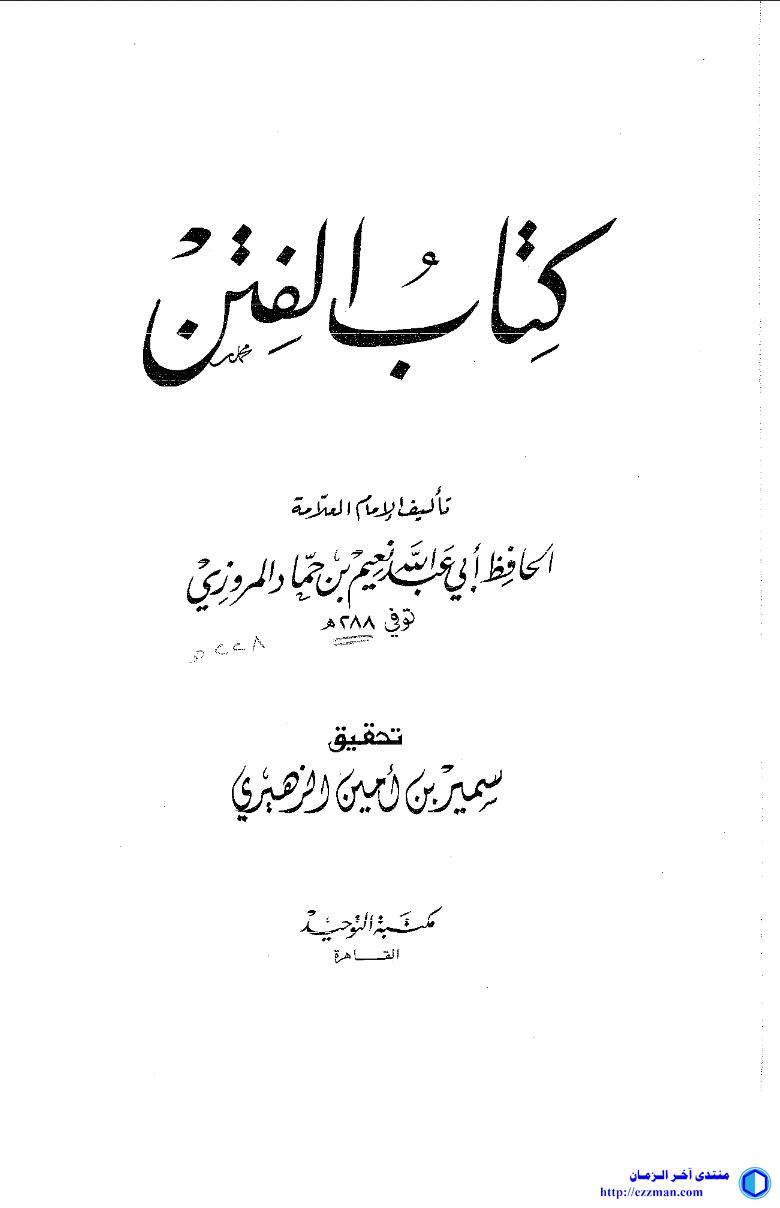 أبي عبد الله نعيم بن حماد ت 229هـ تحقيق. يعد كتاب الفتن للحافظ نعيم بن حماد المروزي من الكتب المهمة التي تتحدث عن الفتن والملاحم التي تقع بين يدي الساعة التي لا يصح من ذكرها إلا أحاديث يسيرة في الجزء الأول من الكتاب تحدث عن تسمية. سمير أمين الزهيري الناشر. نعيم بن حماد المروزي.